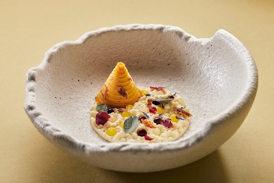 - 4. variants: Jūras ķemmīšu seviče / Apelsīna ziedu mērce / Marinēti rabarberi / tekilas putas / citruss / - [aperitīvs]