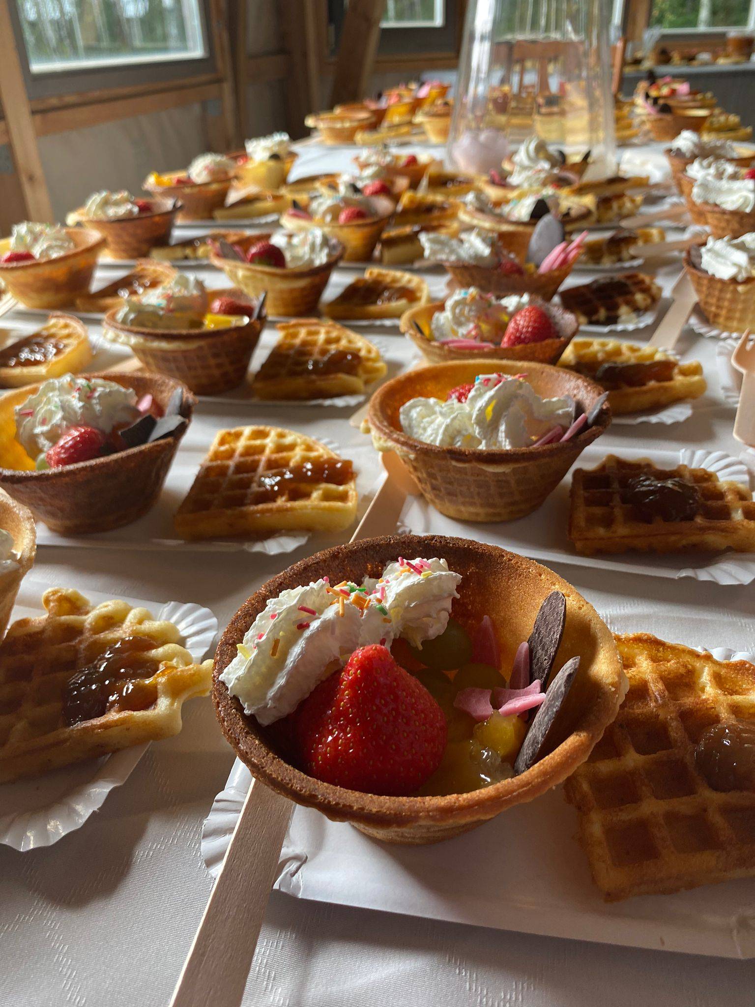 Bet tas vēl nav viss :) Šeit atrodas arī Latvijā lielākā vafeļu pannas kolekcija. Tāpēc šī mums šodien ir aktuāla tēma - jūs gaida degustācija - divu veidu vafeles ar saldajām mērcēm/pildījumu un zāļu tēju (lūgums rakstīt uz mūsu e-pasta adresi Šī e-pasta adrese ir aizsargāta no mēstuļu robotiem. Pārlūkprogrammai ir jābūt ieslēgtam JavaScript atbalstam, lai varētu to apskatīt. - degustācija jāpasūta pirms ceļojuma).