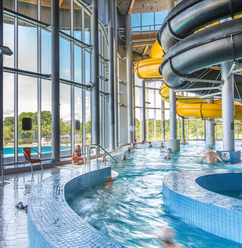 Bērniem līdz 7 gadu vecumam pieejams slēgtais slidkalniņš gaiši dzeltenā krāsā, kura sākums atrodas zemākajā starta laukumiņā, kā arī bērnu baseins. Mazie peldētāji - iesācēji drošības nolūkos var izmantot īpašas piepūšamās aproces. Tie mazuļi, kuri laižas lejā pa slidkalniņu, nonāk nevis kopējā baseinā, bet drošā vannā.