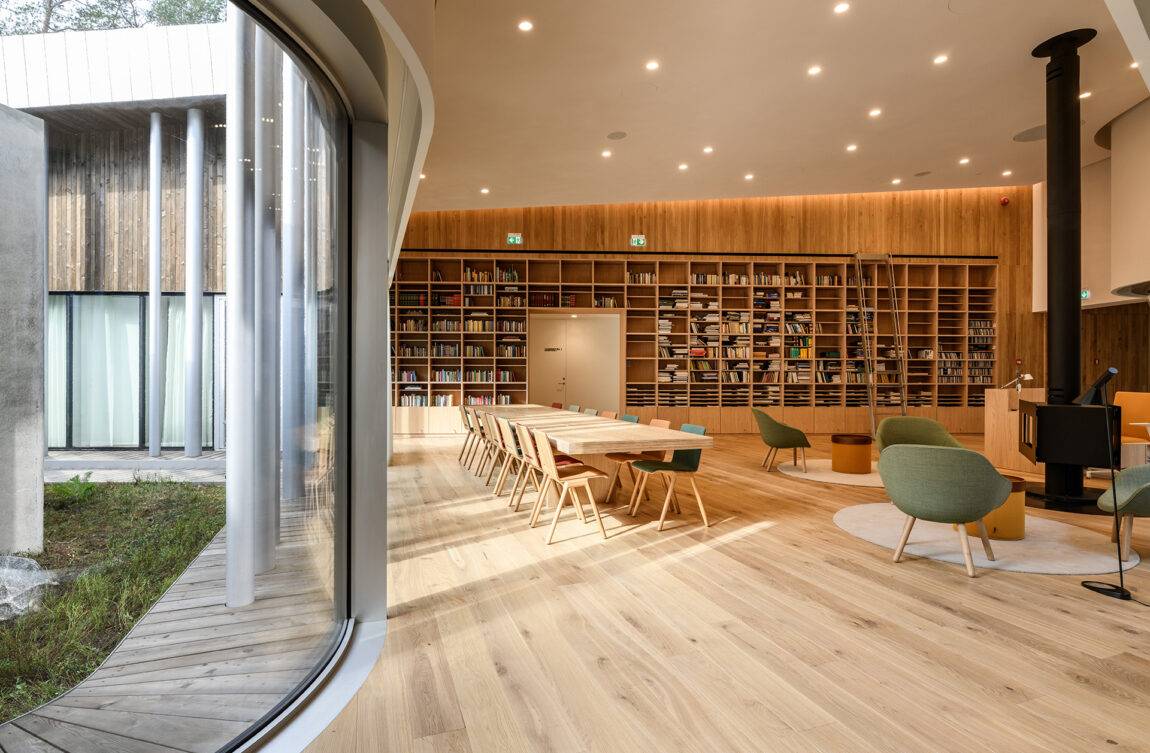 Viss centra komplekss līdzinās mākslas darbam. Vienstāvīgā ēka piecstūra formā bez taisniem leņķiem izvietojusies uz pussalas blīva priežu meža vidū. Piecstūra motīvs projektā atkārtojas dažādās formās, kā spoguļattēls spogulī. Ēkai nav galvenās un sekundārās fasādes, nav telpu hierarhijas. Tikai vienas vai otras daļas funkcija nosaka tās sienu caurredzamību, tostarp to akcentē kolonnu blīvums: to izvietojums atkārto dažu komponista darbu ritmus.