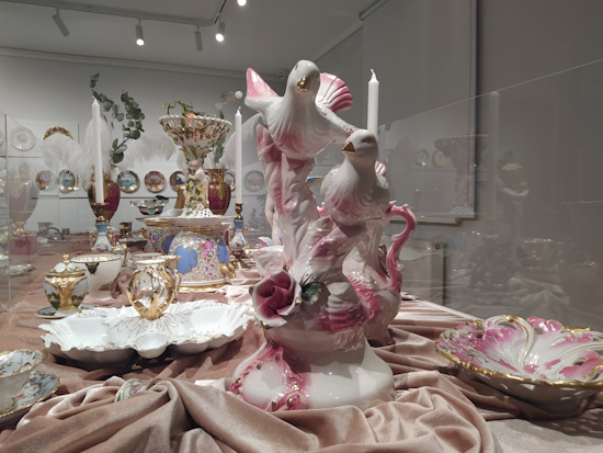 Izstādi papildina arī citu Eiropas un Krievijas porcelāna ražotāju produkcijas paraugi, kuri vienmēr ir bijuši un joprojām ir cienīgi svētku pasākumu rotājumi. Ekskursija vietējā gida vadībā.