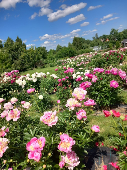 Продолжаем наш эскурсионный тур и дальше завершим наш тур визитом в третий на сегодня пионовый сад - "Romju pojenes". Он сравнительно новый сам по себе, ведь был основан в 2020-м году. И с тех пор, менее чем за 5 лет, здесь уже 777 сортов пионов! Есть здесь и сорта стоимость которых 500 евро. Представляете сколько может стоить один красивый цеток? ;) Хозяйка создала свой сад в память своей бабушки, которая очень любила пионы. Сквозь поколения любовь к прекрасным цветам передалась и теперь нас приглашают в гости на цветение пионов! Как только vы войдеv в ворота, вокруг yас откроется неописуемая красота. Бесчисленные гроздья цветов нежно колышутся на ветру и, кажется, соревнуются друг с другом в своей магии. Экскурсия по саду вместе с хозяйкой.