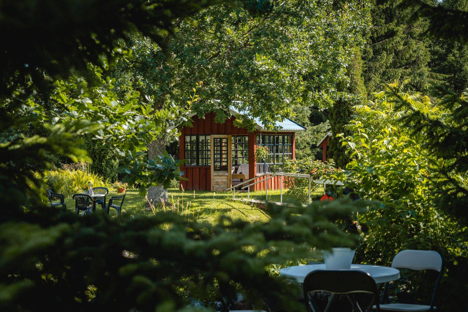 Прибытие в частный декоративный сад Тейспере, созданный в английском коттеджном стиле. При его возведении  учитывались самые разнообразные области -  декоративное садоводство, сельское хозяйство, птицеводство, животноводство, сельский туризм, семейный туризм и образ жизни. Ландшафтный дизайн сада родился из интереса хозяина и хозяйки к разнообразным ландшафтам, разным видам деревьев, кустарников и цветов. Многие пирамидальные и изумрудные туи и цветы (в основном герани) выращены хозяином Ааре самостоятельно. В саду есть клумба роз, а также разноцветные лиственные и вечнозеленые деревья: красный и желтый барбарис, красный фундук, красный дуб, амурский клен и др. Сад был открыт для посетителей в 2014 году, Здесь  хозяйка Малле могла показать вам: животные и птицы на ферме: куры, петухи, утки, гуси, голуби и фазаны; кролики, аборигенная овца Кихну и енот. Экскурсия по саду с хозяйкой.